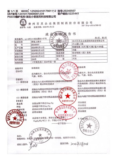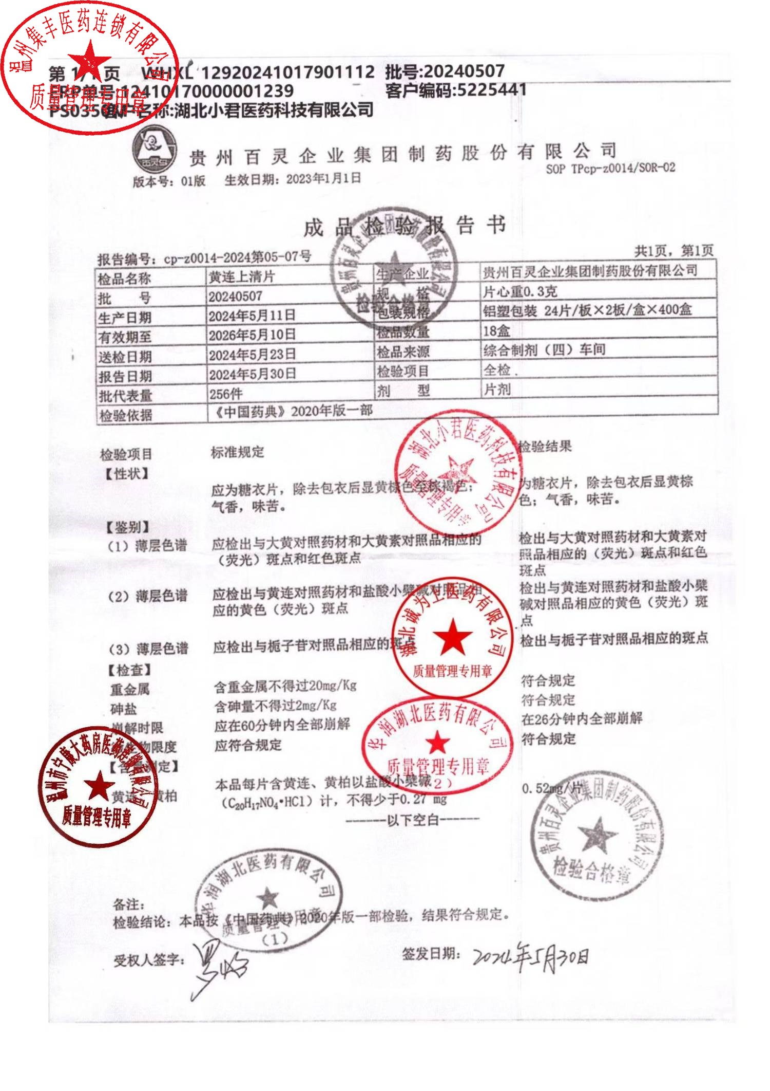 2 | 21322 | 黄连上清片(百灵) | 48片 | 20240507 | 盒 | 贵州百灵企业集团制药股份有限公司 |  | 打包下载 |