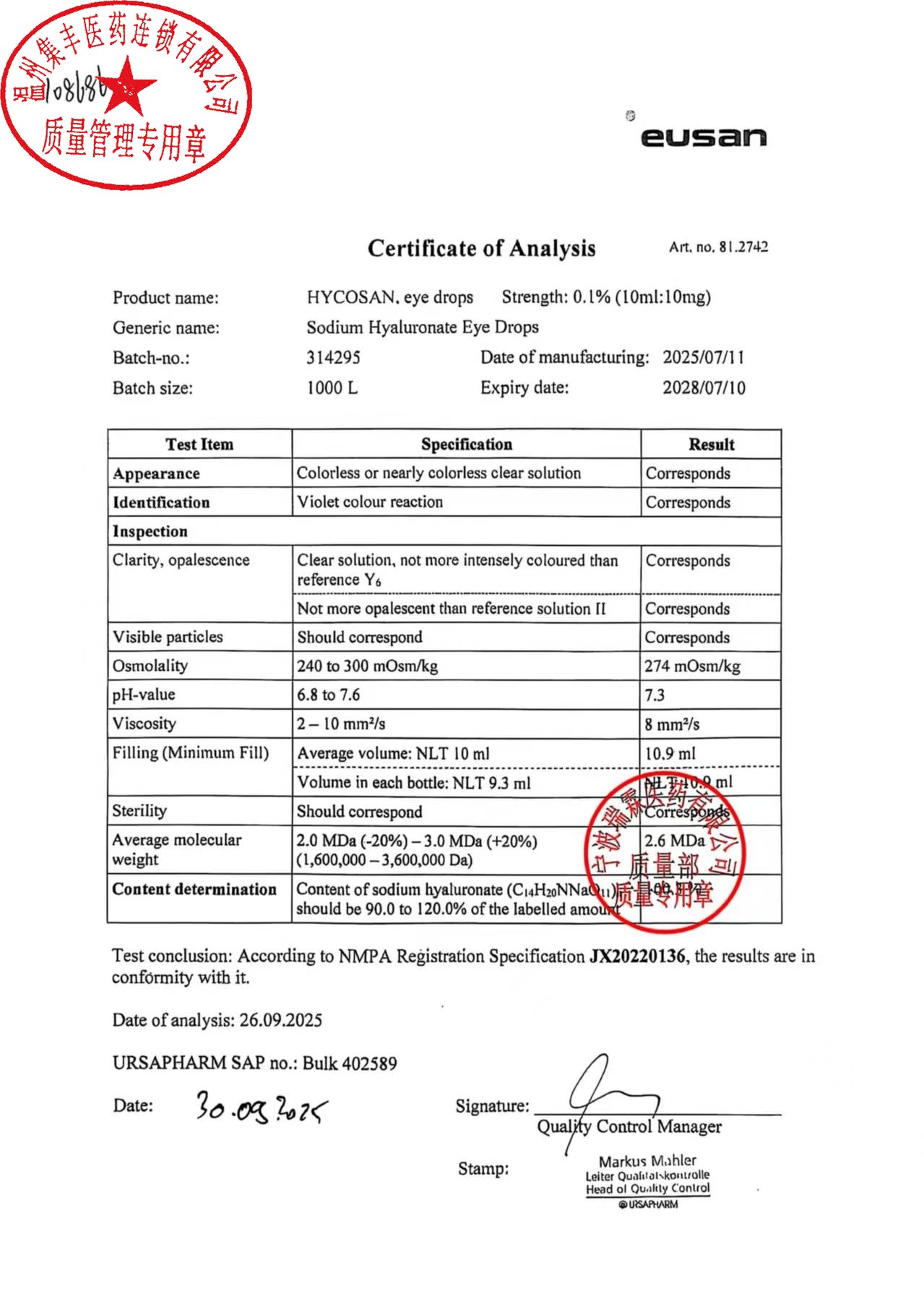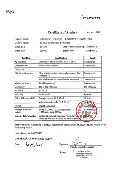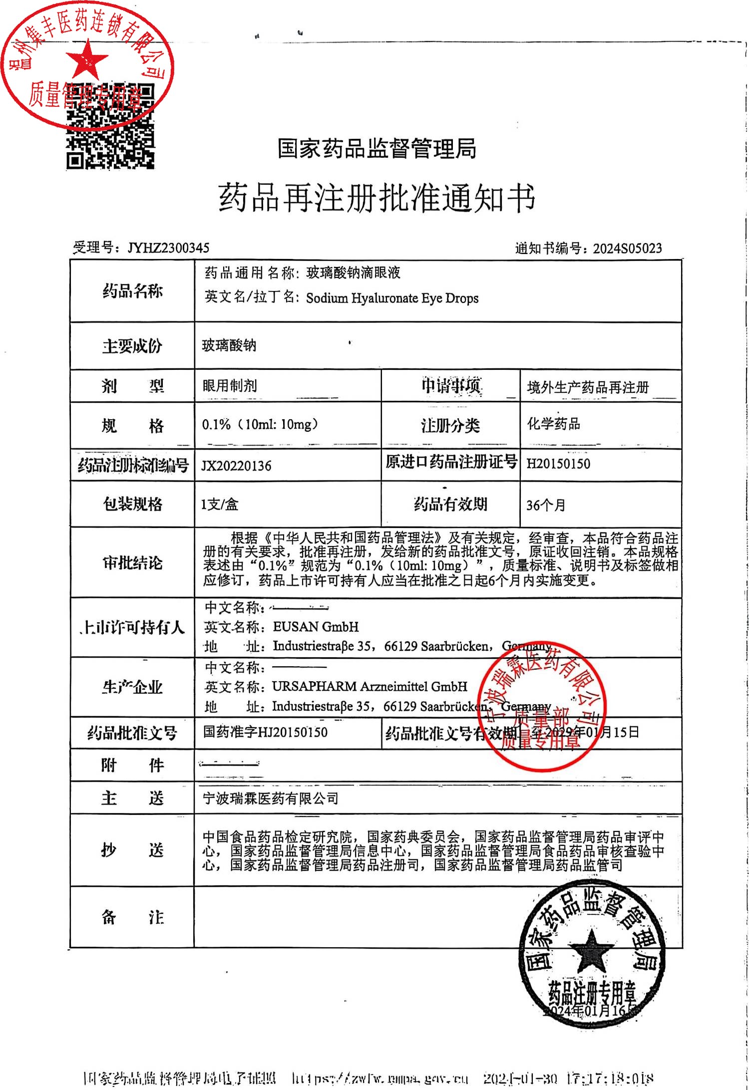 | 15 | 25370 | 玻璃酸钠滴眼液(海露)OTC | 10ml(0.1%) | 314295 | 盒 | URSAPHARM Arzneimittel GmbH |     | 打包下载 |