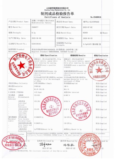 | 11 | 20355 | 盐酸二甲双胍片(格华止) | 0.5g*20片 | 2506077 | 盒 | 中美上海施贵宝制药有限公司 |   | 打包下载 |